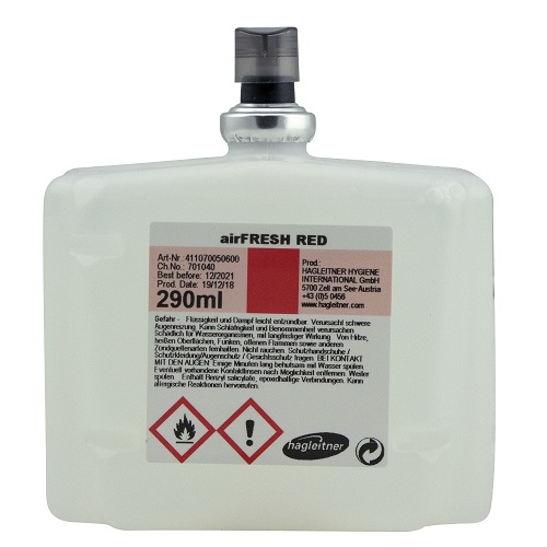 - Red Hagleitner — освежитель воздуха. Высококачественный парфюм для комнат с успокаивающим ароматом осени — запах урожая, созревших фруктов.