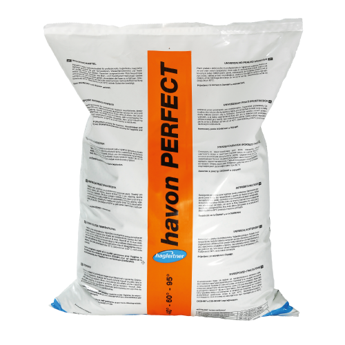 - Havon Perfect — профессиональный универсальный стиральный порошок. Подходит для любых температур, любой жесткости воды, любого текстиля. Отбеливающий эффект при t от 40 ºC, дезинфицирующее действие при t от 60 ºC. Рекомендуется для тряпок для мытья полов, протирочных полотенец и салфеток, одежды персонала кухни. Удаляет сложные загрязнения, такие как кровь и белок, не повреждает волокон. Устраняет неприятные запахи.