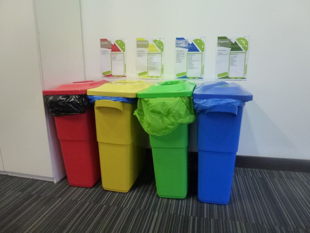 Вопрос о том, как организовать раздельный сбор мусора на предприятии, актуален практически для любого хозяйствующего субъекта. Для первичного накопления раздельно собранных отходов целесообразно устанавливать на предприятии блоки разноцветных урн. Для накопления транспортной партии мусора оптимально подойдут емкости из высокопрочного пластика объемом от 120 до 1100 литров (в зависимости от масштаба предприятия и объемов производимых отходов). Также имеет смысл оснастить контейнеры специальным прессом для уплотнения мусора, что при его вывозе позволит загрузить значительно большие объемы. Специалисты по управлению обращением с отходами рекомендуют в данном случае установить как минимум 3 таких цветных контейнера: