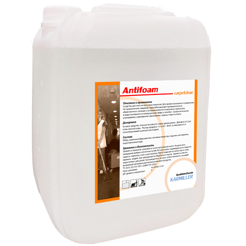 Для финишной обработки. После основной чистки ковров и мягкой мебели рекомендуется промыть их раствором Antifoam с концентрацией 0,1-0,4% (2-4 мл на 1 л воды). Дополнительное ополаскивание чистой водой не требуется.
