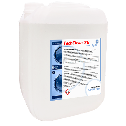 Жидкое моющее средство TechClean 76 используется при каждой стирке в сочетании с TechClean 74 или другими средствами для основной стирки. Подходит только для автоматических систем дозирования. Нельзя использовать при стирке шерсти и шелка.