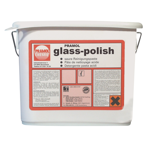 Порошок для очистки и полировки травленного и матового стекла. Ингредиенты, входящие в состав продукта, химически изменяют верхнюю структуру стекла, что позволяет отполировать поверхность.