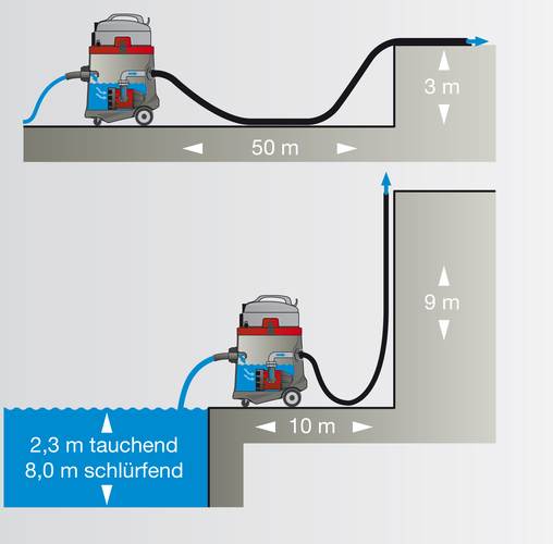 Пылесос Sprintus N51/1 KPS - это высокопроизводительный пылесос со встроенной помпой для откачки воды. Эффективен для выкачивания воды после наводнений или прорыва труб, очистки плоской кровли, санации прудов и бассейнов и т.д. Оснащенный 50-литровым баком и идеально подходит для профессионального использования. Встроенный насос с производительностью помпы до 14 000 литров в час может напрямую подключаться к разъему питания пылесоса. Фильтрующая сетка защищает помпу от попадания листьев, веток и мелкого мусора и легко очищается через прочную молнию.Откаченная вода непрерывно сливается из бака через предусмотренный шланг длиной 10 метров. Сливной шланг присоединяется к стандартизированному трубному соединению типа С , которое также может использоваться для присоединения пожарных или технических аварийных шлангов. Принцип работы - Вода закачивается через вакуумный шланг и встроенная помпа немедленно выводит их через заднюю часть устройства.