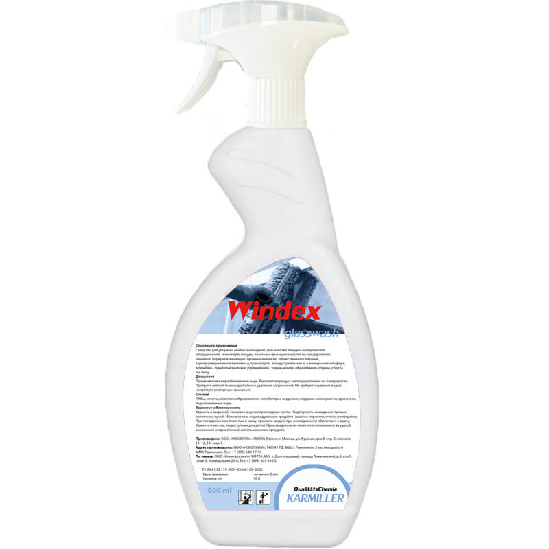 Windex от Karmiller готовый к применению спиртовой очиститель стекла, зеркал, пластиковых поверхностей (столы, шкафы, двери, витрины), оргстекла, акрилового стекла и облицовочной плитки. Не повреждает окрашенные поверхности. Быстро сохнет без разводов и подтеков.
